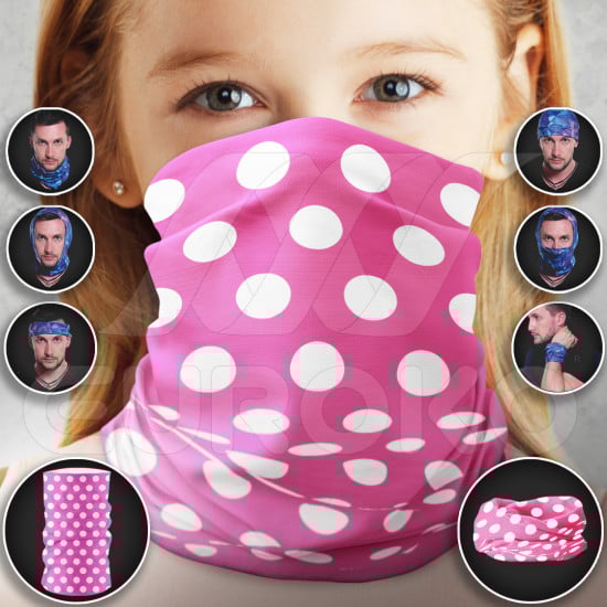 Detská multifunkčná šatka bodkovaná je nevyhnutným doplnkom rôznych vonkajších a vnútorných aktivít. Originálna šatka je ideálnou voľbou pre tých, ktorí ocenia jej široké možnosti použitia. Chráni hlavu, tvár alebo krk pred prachom, chladom, vetrom alebo slnkom. Materiál je mimoriadne pružný, mäkký polyester, vďaka elastánu sa nosí mimoriadne pohodlne.