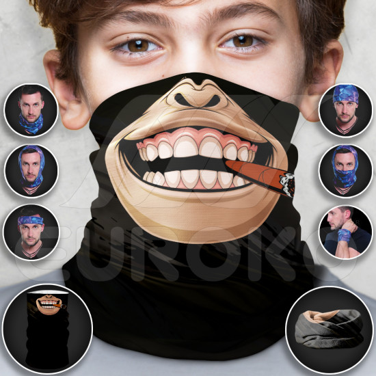 Detská multifunkčná šatka opica je nevyhnutným doplnkom rôznych vonkajších a vnútorných aktivít. Originálna šatka je ideálnou voľbou pre tých, ktorí ocenia jej široké možnosti použitia. Chráni hlavu, tvár alebo krk pred prachom, chladom, vetrom alebo slnkom. Materiál je mimoriadne pružný, mäkký polyester, vďaka elastánu sa nosí mimoriadne pohodlne.