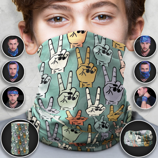 Detská multifunkčná šatka peace je nevyhnutným doplnkom rôznych vonkajších a vnútorných aktivít. Originálna šatka je ideálnou voľbou pre tých, ktorí ocenia jej široké možnosti použitia. Chráni hlavu, tvár alebo krk pred prachom, chladom, vetrom alebo slnkom. Materiál je mimoriadne pružný, mäkký polyester, vďaka elastánu sa nosí mimoriadne pohodlne.