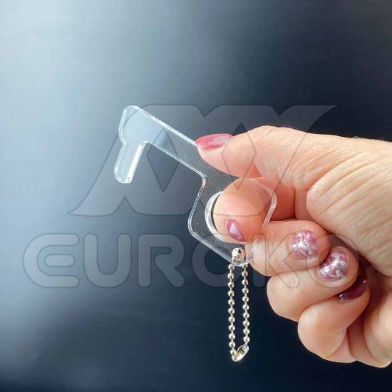 Objednajte si hygienický prívesok na kľúče s vlastnou potlačou, ktorý vám umožňuje otvárať a zatvárať dvere bez toho, aby ste sa ich dotýkali! Praktický akrylový prívesok, pomocou ktorého sa vyhnete priamemu kontaktu s rôznymi povrchmi. Bezplatný grafický návrh, rýchla dodacia doba, garancia vysokej kvality!